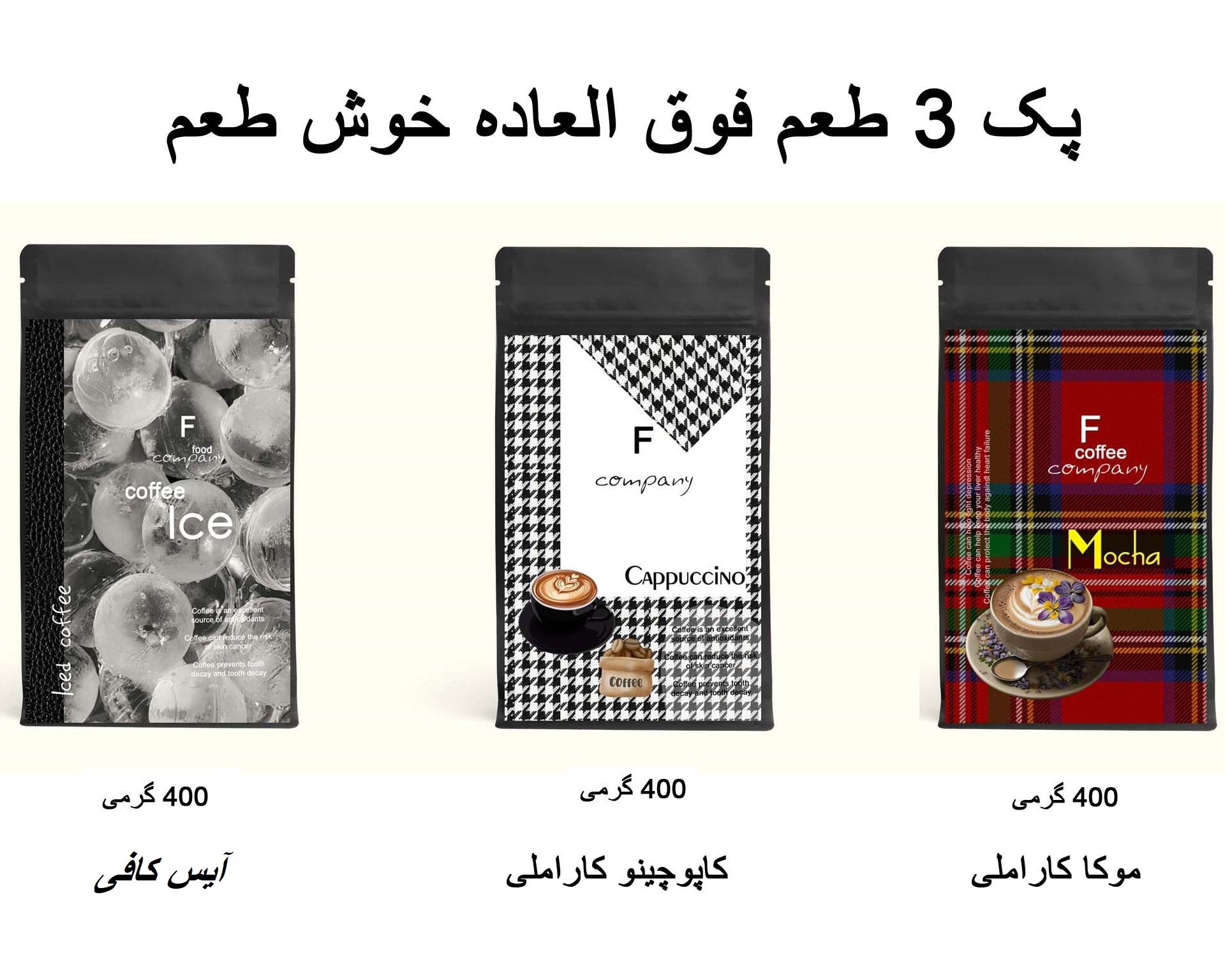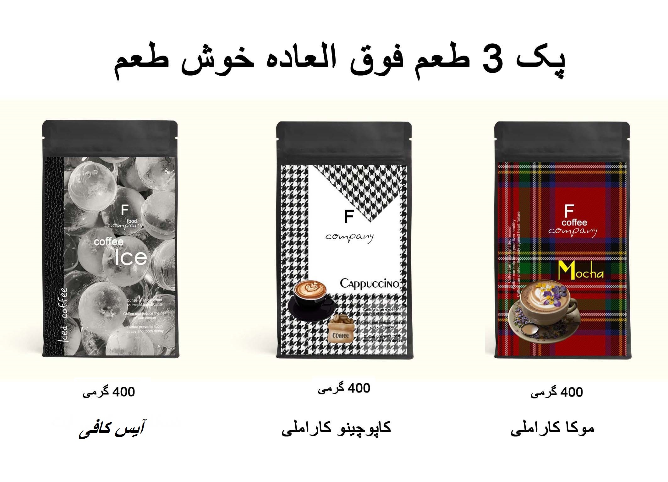ای پک جذاب شامل سه محصول  400 گرمی پرطرفدار و خوشمزه  برند اف فود کمپانی که برای شما علاقمندان به قهوه تدارک دیده شده است